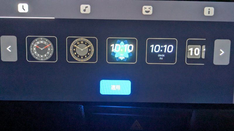 時計や曲名表示のデザイン等は、アプリからいろいろと選べるようになっています。